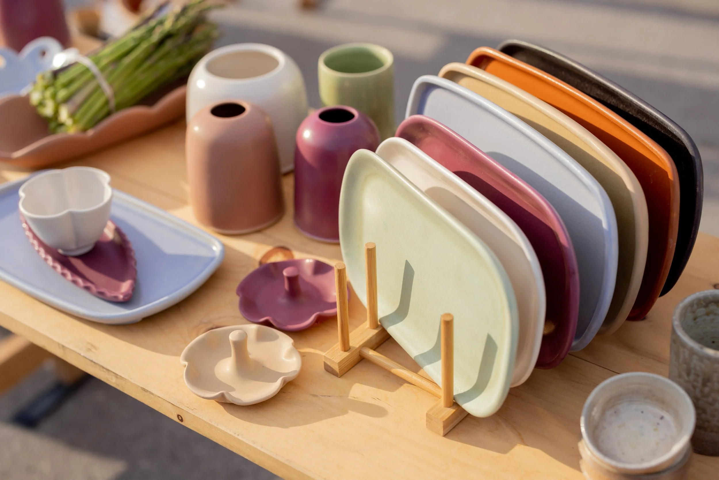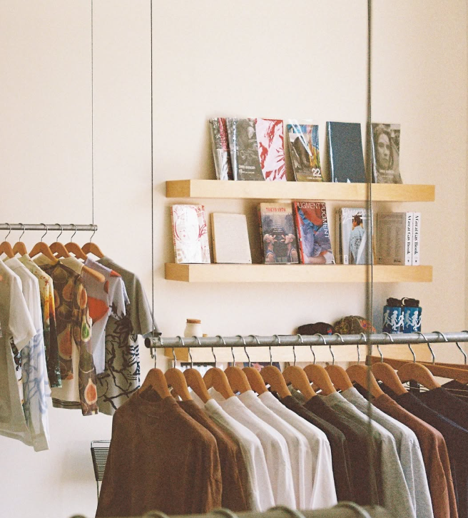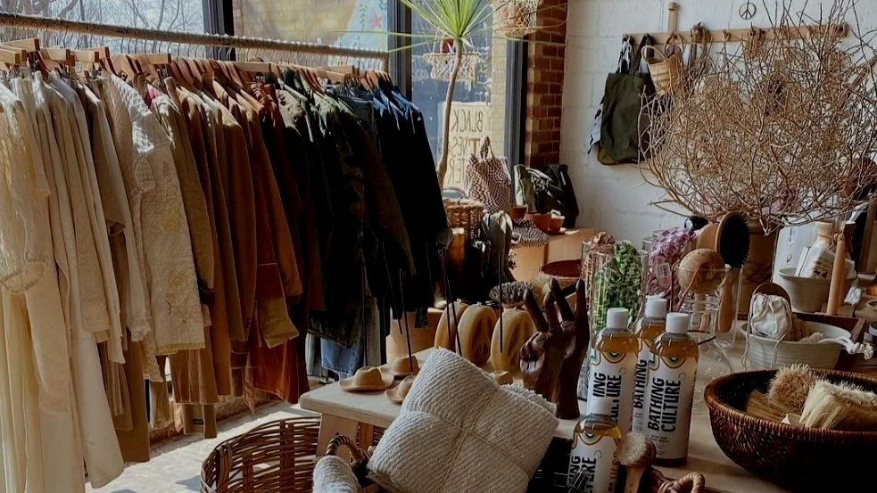 A vintage and pre-loved pop up shop selling curated fashion and home pieces.